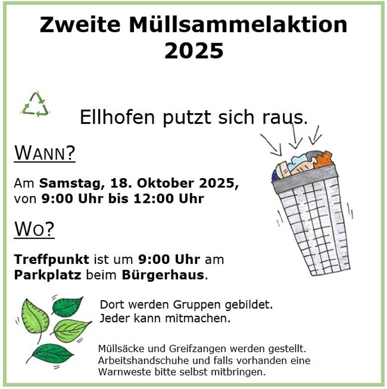 Zweite Müllsammelaktion 2025: Samstag, 18. Oktober 2025