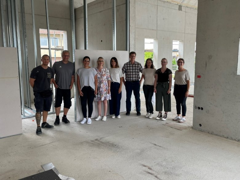 Das Rathausteam hat sich Ende Juli selbst ein Bild von den Baufortschritten gemacht. Natürlich sind alle gespannt, wie ihr künftiger Arbeitsplatz aussehen wird.