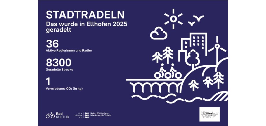 Am 9. Juli ist das STADTRADELN in Ellhofen und dem gesamten Landkreis Heilbronn erfolgreich zu Ende gegangen. Drei Wochen lang legten Bürgerinnen und Bürger möglichst viele Alltags- und Freizeitwege mit dem Fahrrad zurück. Ob zum Einkaufen, zur Arbeit oder bei einer sommerlichen Radtour – jeder Radkilometer zählte! Rund 8.300 Kilometer waren es am Ende in Ellhofen. Damit vermieden die 36 teilnehmenden Radlerinnen und Radler 1 Tonne CO2 im Vergleich zum Autofahren. Alle Teilnehmenden haben damit ein Statement für aktiven Klimaschutz und ein tolles Zeichen für gesunde und nachhaltige Mobilität im Alltag gesetzt!